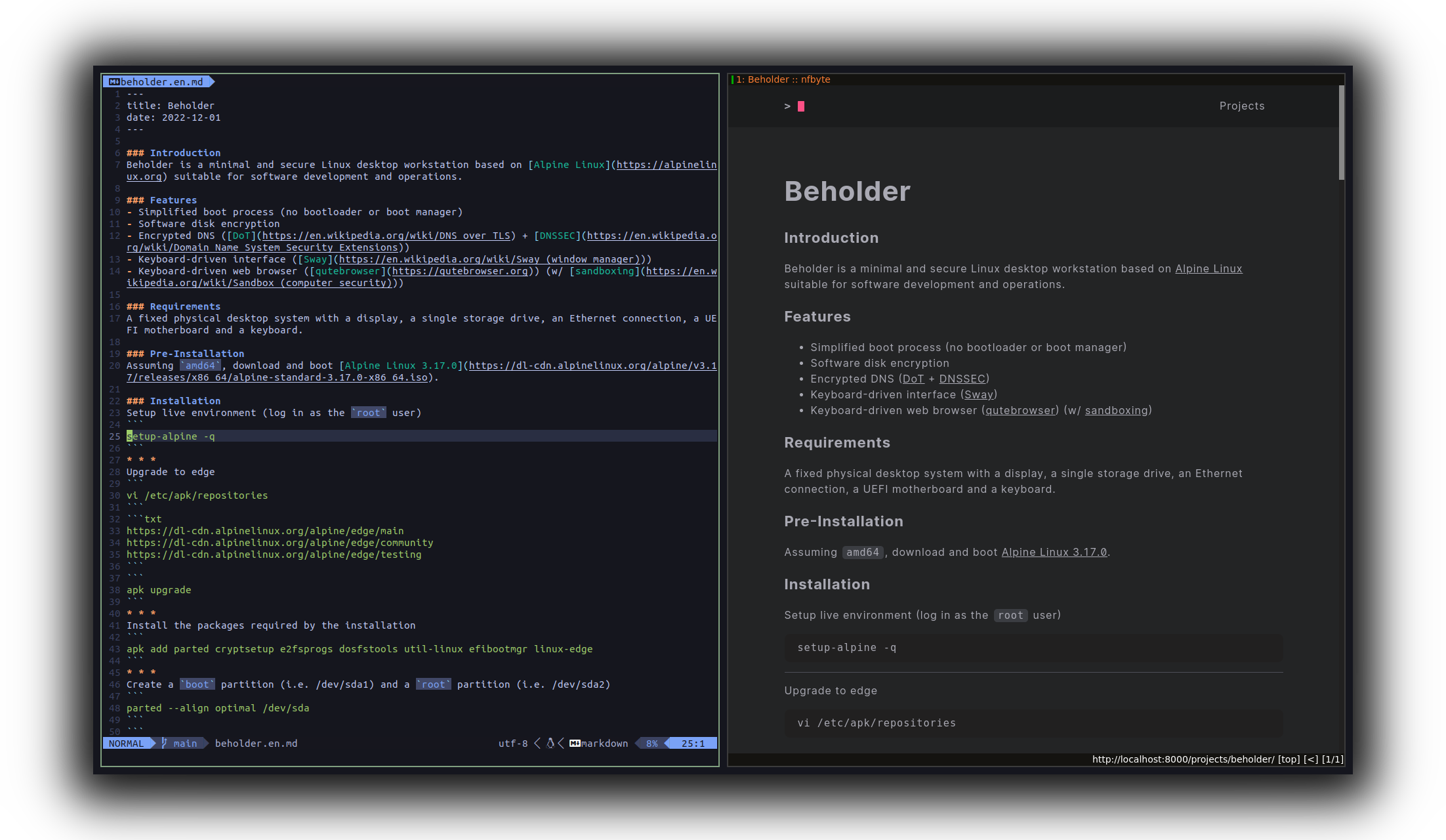Beholder is a minimal and secure Linux desktop workstation based on Alpine Linux suitable for software development and operations.