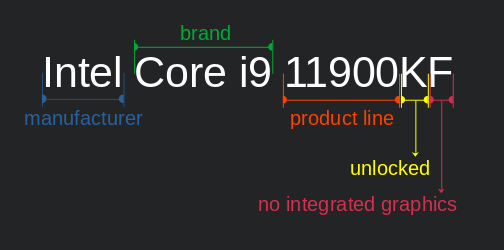 There are two main amd64 processor manufacturers: Intel and AMD, each with their own main brand for consumer desktop processors: Core i3/i5/i7/i9 for Intel and Ryzen 3/5/7/9 for AMD.